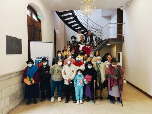 La delegación salió desde Punín y fue recibida en la ciudad con gran calidez. La primera parada fue el histórico Teatro León, donde los visitantes disfrutaron de un pequeño cortometraje. Posteriormente, se trasladaron al Palacio de Cristal para compartir con los abuelitos y abuelitas de nuestros talleres de “Sabiduría Dorada”.