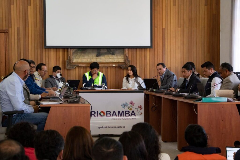 En el salón Jóse María Róma n, el Cómite de Operaciónes de Emergencia (COE) Cantónal deRióbamba se reunió este lunes