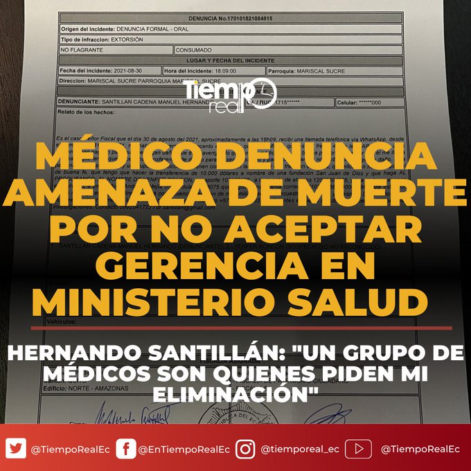 🔴.#URGENTE |🔴 El médico @drsantillan denuncia "he sido sujeto de amenazas de muerte y secuestro de mi familia🔴 "Justo después