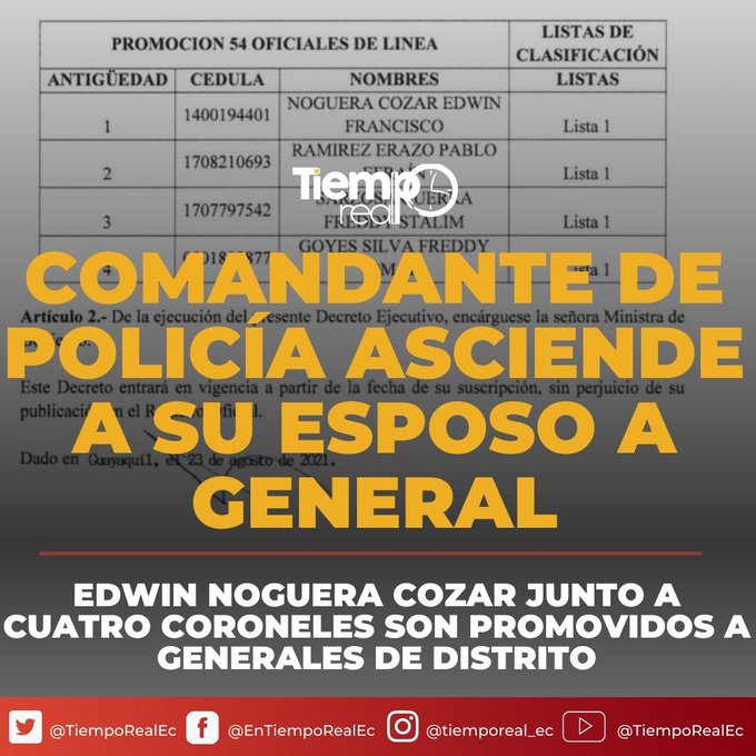 🔴.#URGENTE |🔴 De entre 27 coroneles, el Presidente @LassoGuillermo acoge la nómina de cuatro oficiales enviada por la @PoliciaEcuador 🔴 […]