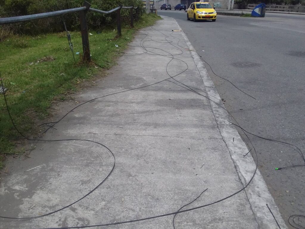 Ya pasaron pocos meses en el que instauraron nuevas luminarias a lo largo de la Av. Atahualpa en Riobamba, sin embargo, dejaron los cables viejos, algunos de ellos quedaron suspendidos entre los postes y árboles que dan junto al rio Chibunga.