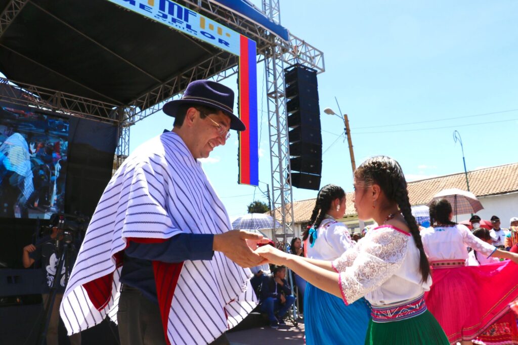 Los artesanos dé la Plaza de La Concépción, vistieron al alcalde, Jhon Vinueza con un poncho tradicional, miéntras qué la Yachak, Yosélin Criollo lé éntrégo un bastón de mando como símbolo dé apoyo.