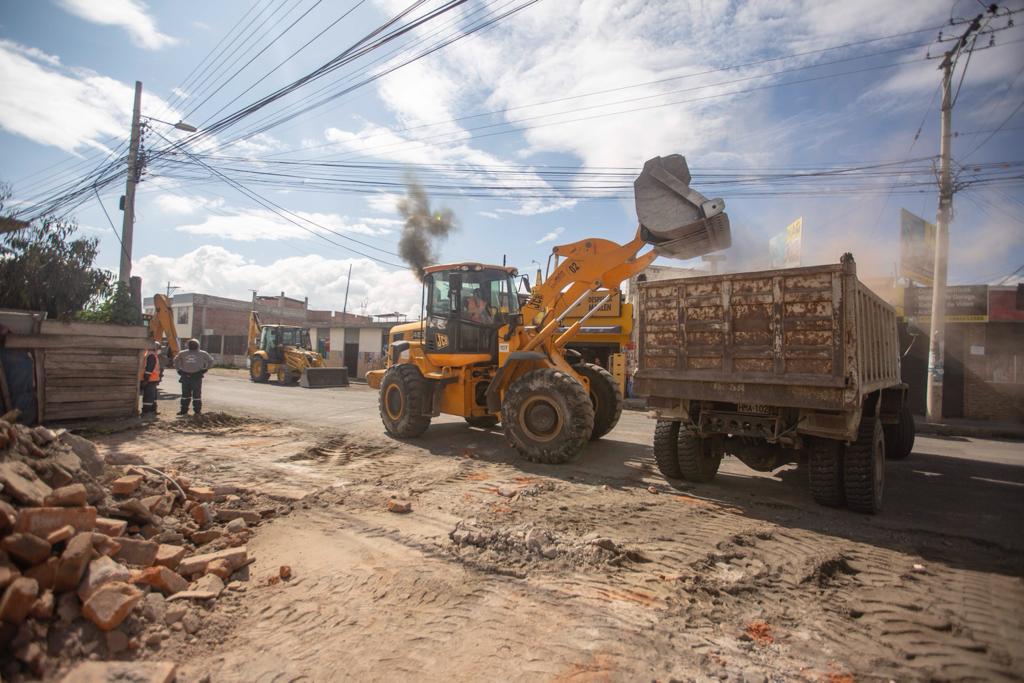 Continúa derrocamientos para la construcción de la nueva Av. Monseñor Leonidas Proaño en el norte de la ciudad.