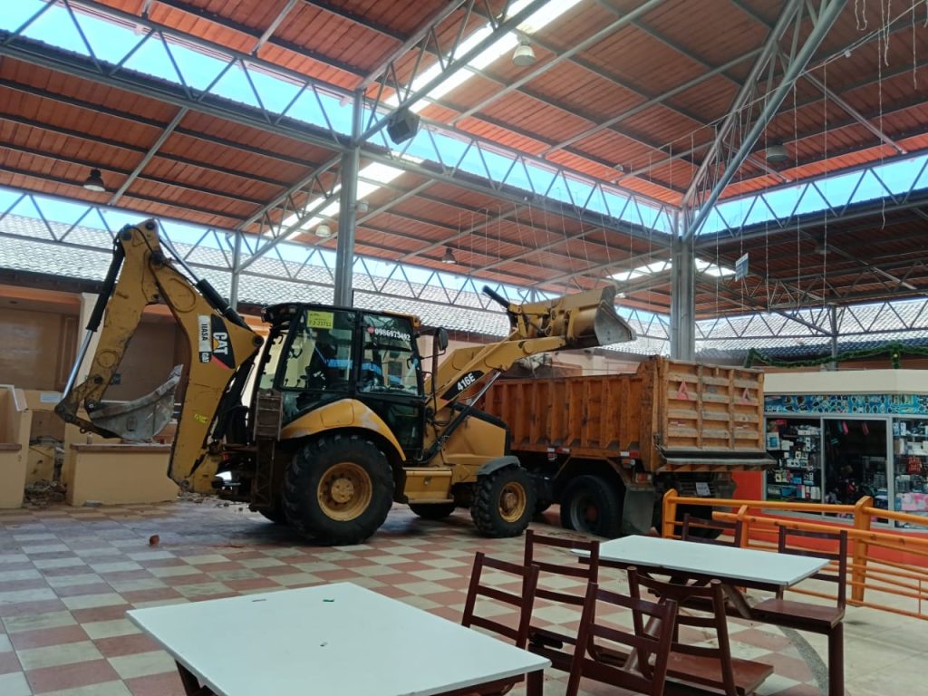 Se inició la demolición controlada de un bloque de canceles en la sección de comidas del mercado Pedro de Lizarzaburu