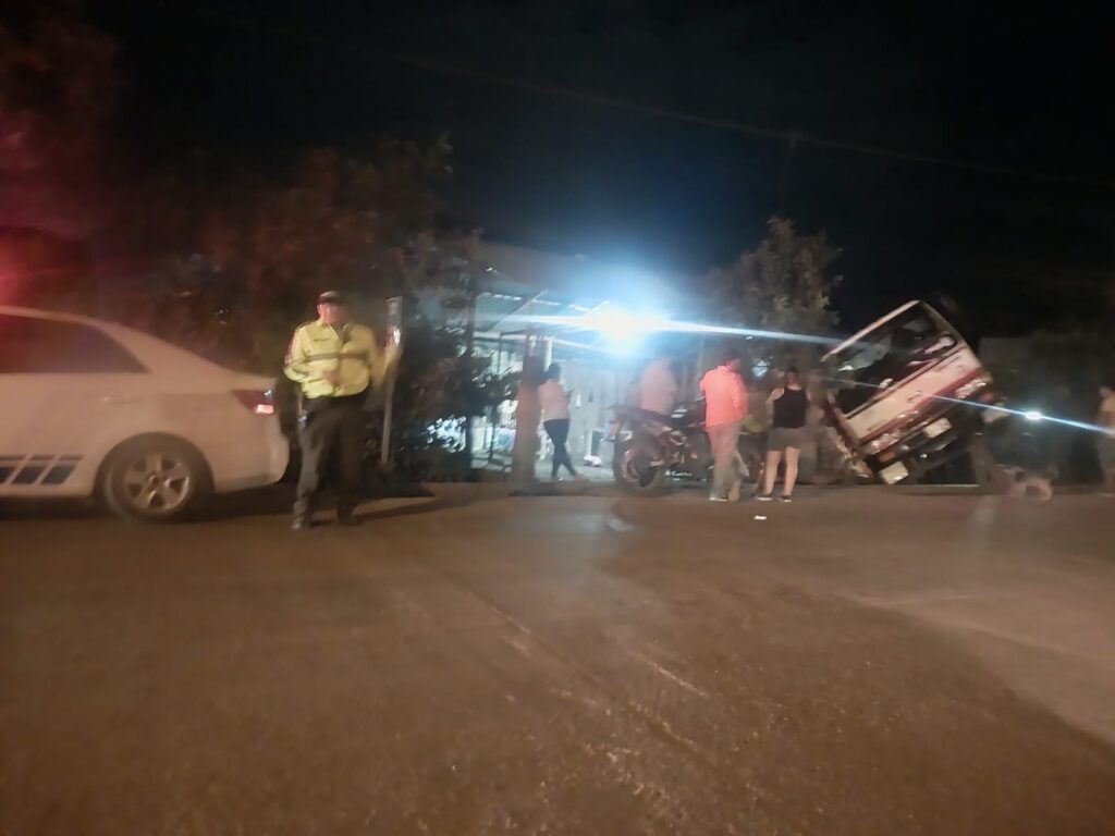 A las 23:00, en el sector de Los Santiagos se registra una llamada a la línea 9-1-1 indicando un siniestro de tránsito que involucró a un camión. Desde el ECU 911 se coordinó la asistencia de Policía Nacional quienes verifican que un camión se impactó contra una vivienda. Se registran daños materiales, no existen personas heridas. El vehículo fue retenido al no existir un acuerdo de reparación.