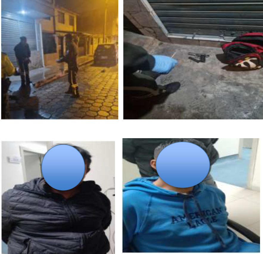 A las 23:00, personal de la policía del circuito “Pucará” de la Subzona de Policía Chimborazo Nro-6, realizó un patrullaje preventivo en la Av. Leopoldo Freire y Lisboa, sector del Mercado Mayorista. Los uniformados vieron a ciudadanos saliendo a precipitada carrera de la farmacia “Estar bien”.