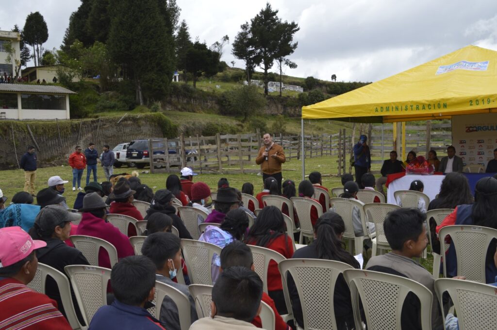 Previo al inicio de estos trabajos en el sector rural, el Municipio de Riobamba como en esta y todas las obras se encarga de la dotación de materiales de construcción, en este caso se entregó la cantidad de 205 quintales de cemento, material pétreo macadán, ripio, arena y de ferretería como tubos, mallas electrosoldadas, pintura, varillas entre otros, el GADP y los moradores como contraparte en cambio facilitan la mano de obra