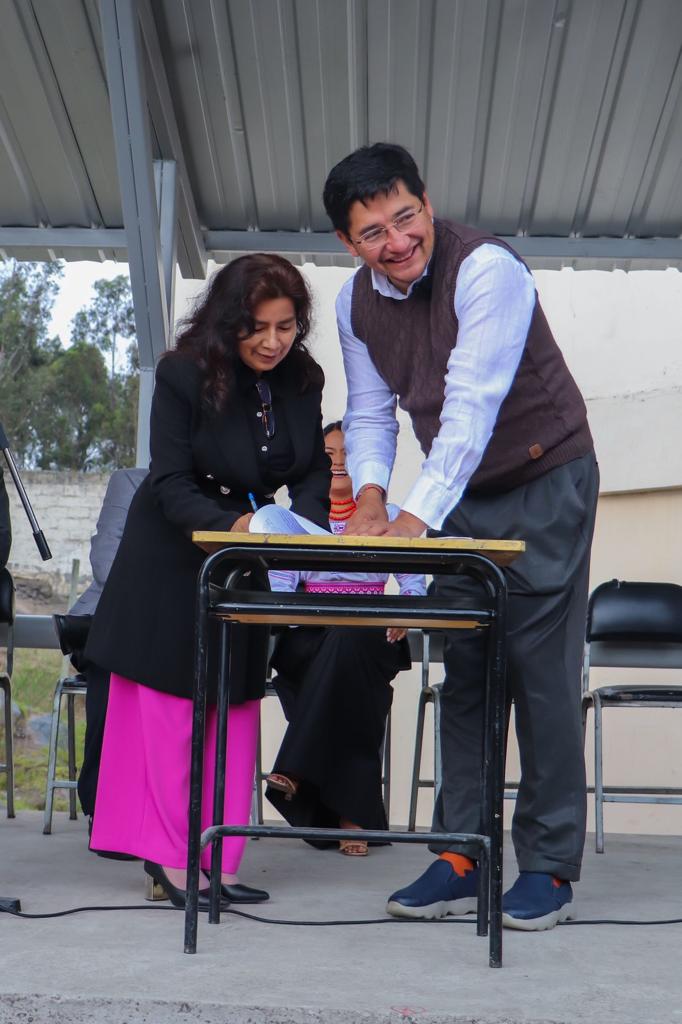 Elsa Andrade en su calidad de rectora encargada de la Unidad Educativa Carlos Cisneros, manifestó que tras un largo periodo de espera por fin se concreta el anhelo de cambiar la cubierta del edificio central, con esta firma queda plasmada la responsabilidad que en pocos días más iniciarán los trabajos, así como el compromiso y la buena voluntad de las autoridades para esta institución educativa.