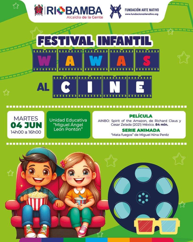 Festival Infantil Wawas al Cine, Martes 04 de junio 2024, este martes 04 de junio del 2024 a las 16:00 en la unidad Educativa Miguel Ángel León
