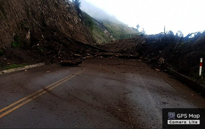 La vía Riobamba – Penipe – Baños está cerrada por un deslizamiento de tierra en el sector de Cahuají Bajo.