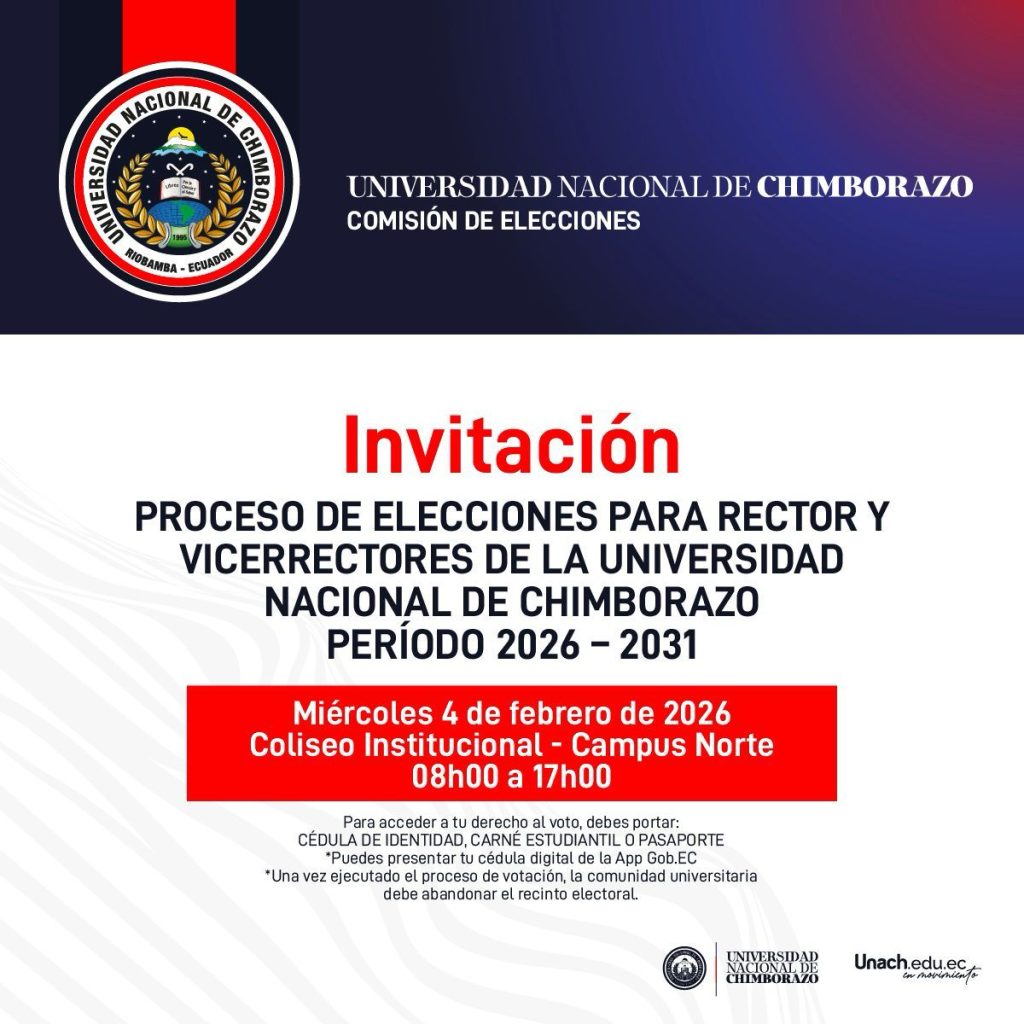 La Universidad Nacional de Chimborazo invita a la comunidad universitaria a participar en el proceso de elecciones para Rector y […]