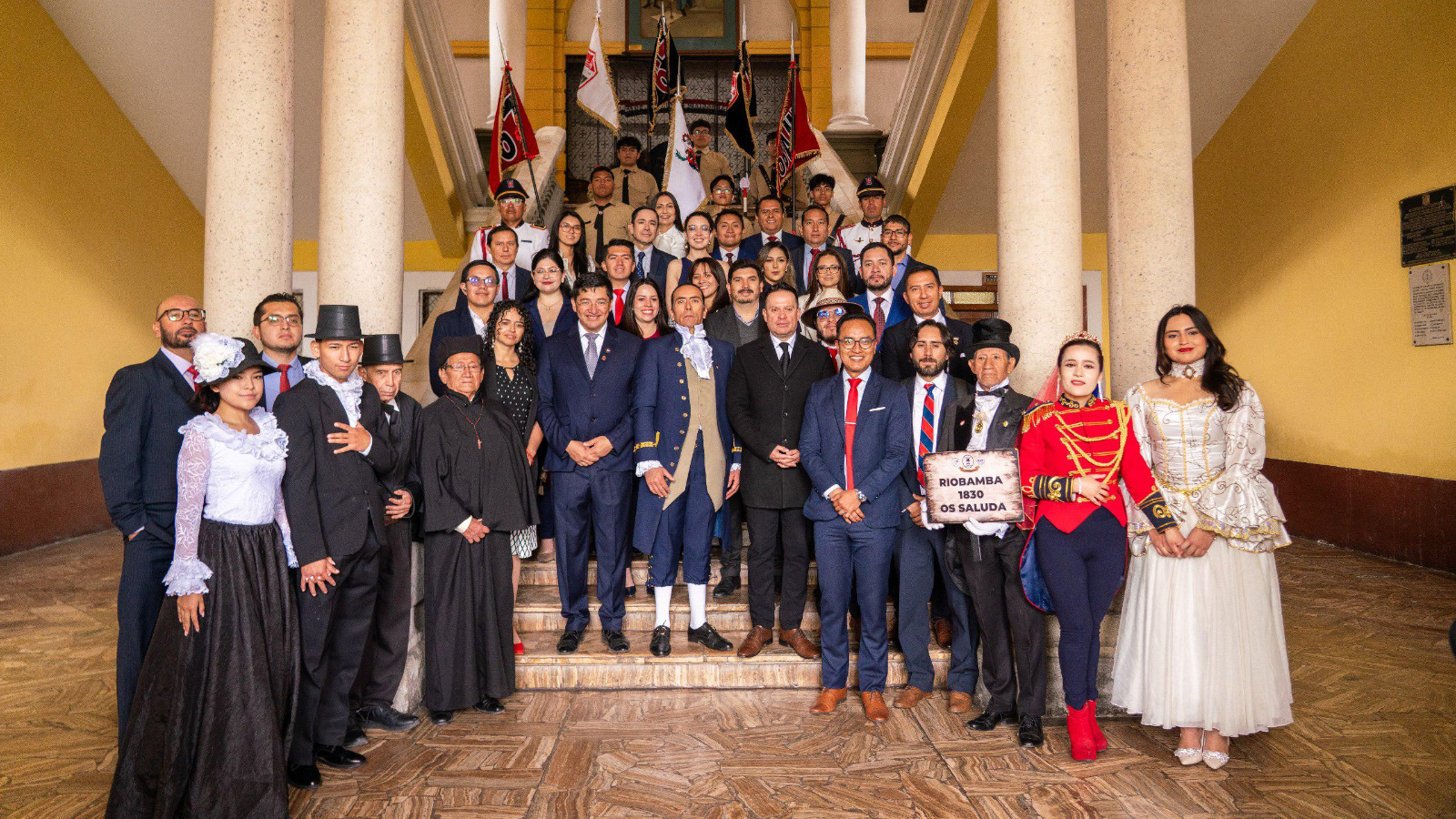 En su intervención, el alcalde John Vinueza destacó: “Estamos viviendo no solo la celebración y el cumpleaños del país sino también la reivindicación de lucha para que el país recuerde el día de su Fundación, el lugar que es la cuna de esta nación, Riobamba”.