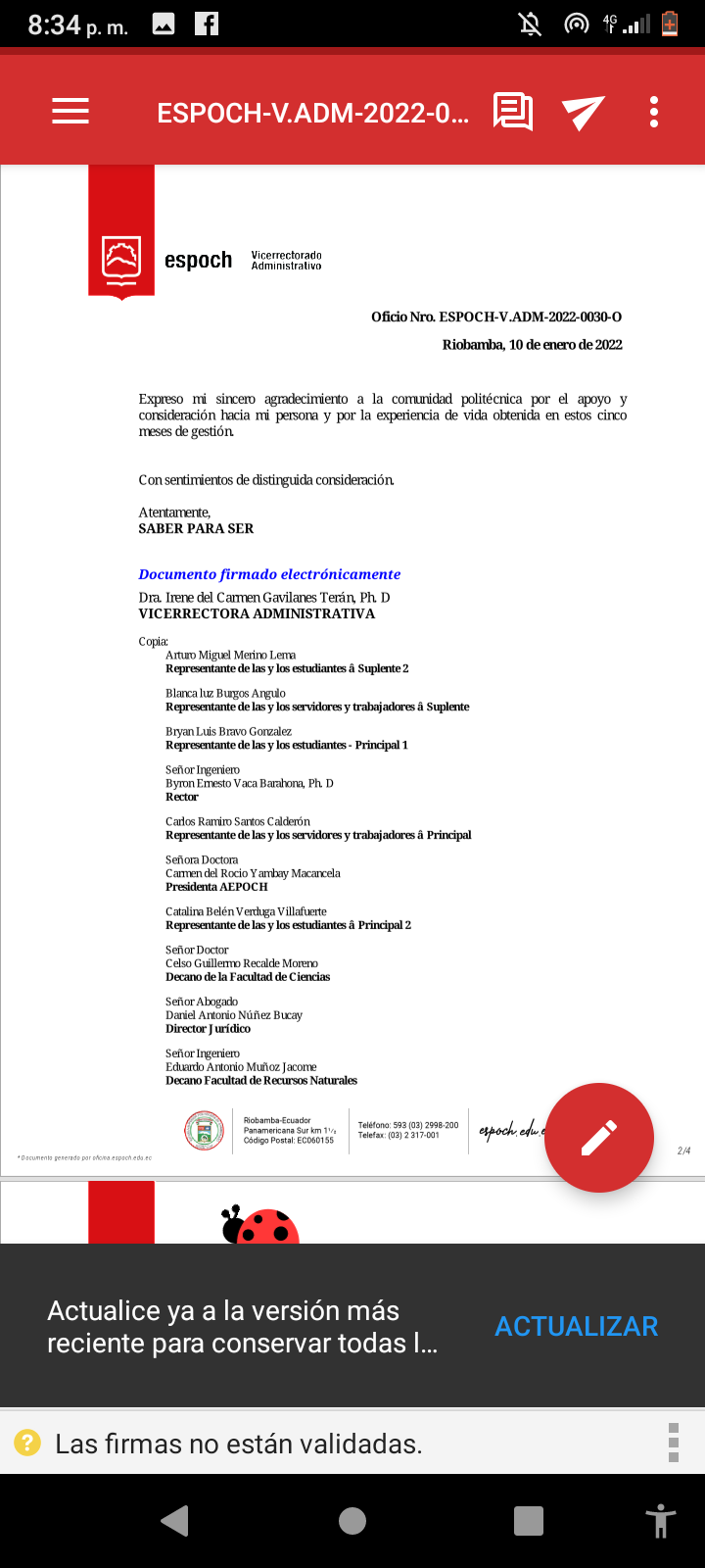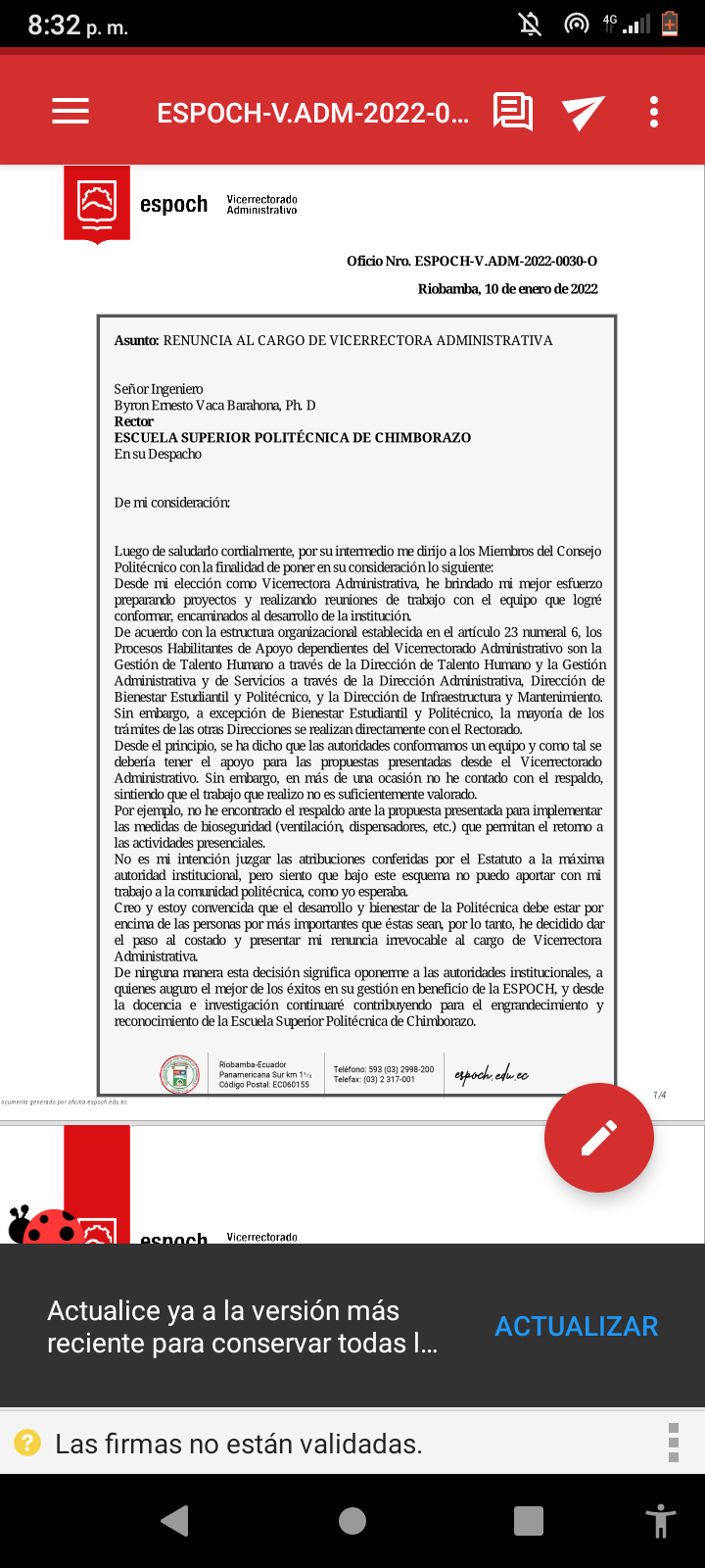 Renuncia de la Vicerrectora de la Espoch