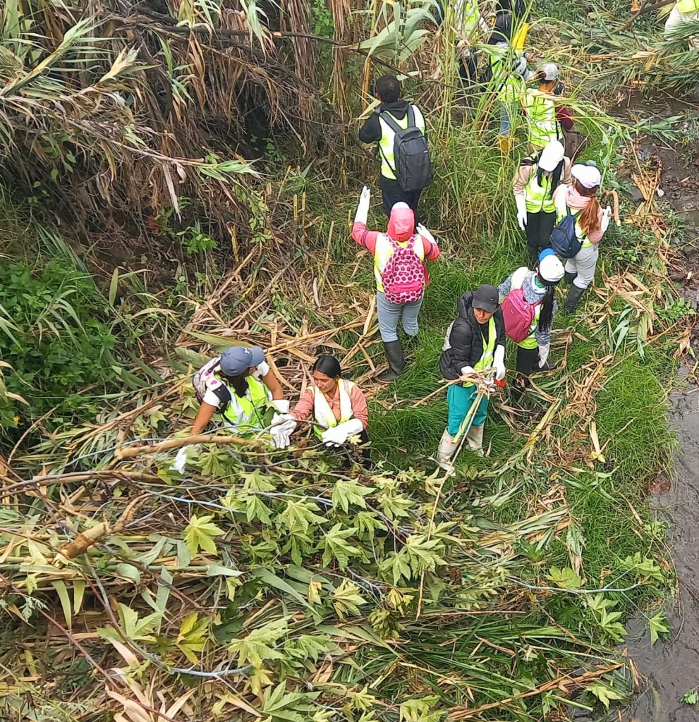 Jóvenes comprometidos con el cuidado del ambiente, en coordinación con la Dirección de Gestión Ambiental y Riesgos de la municipalidad de Guano, en la ribera del rio Guano realizaron la limpieza de los espacios naturales vitales para el equilibrio ecológico.