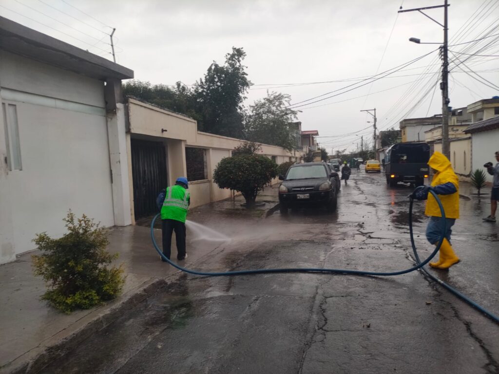 Riobamba esta tarde soporto un aguacero por lo que varios sectores de la ciudad están siendo atendidos con respuesta inmediata del personal de Emapar y del Gad Municipal quienes se hicieron presentes con el fin de destapar los sumideros, por lo que se solicita a los ciudadanos no arrojar basura peor aun dejar en la vía material de construcción que con el agua lluvia terminan complicando los sumideros y causando daño a varios sectores de la comunidad