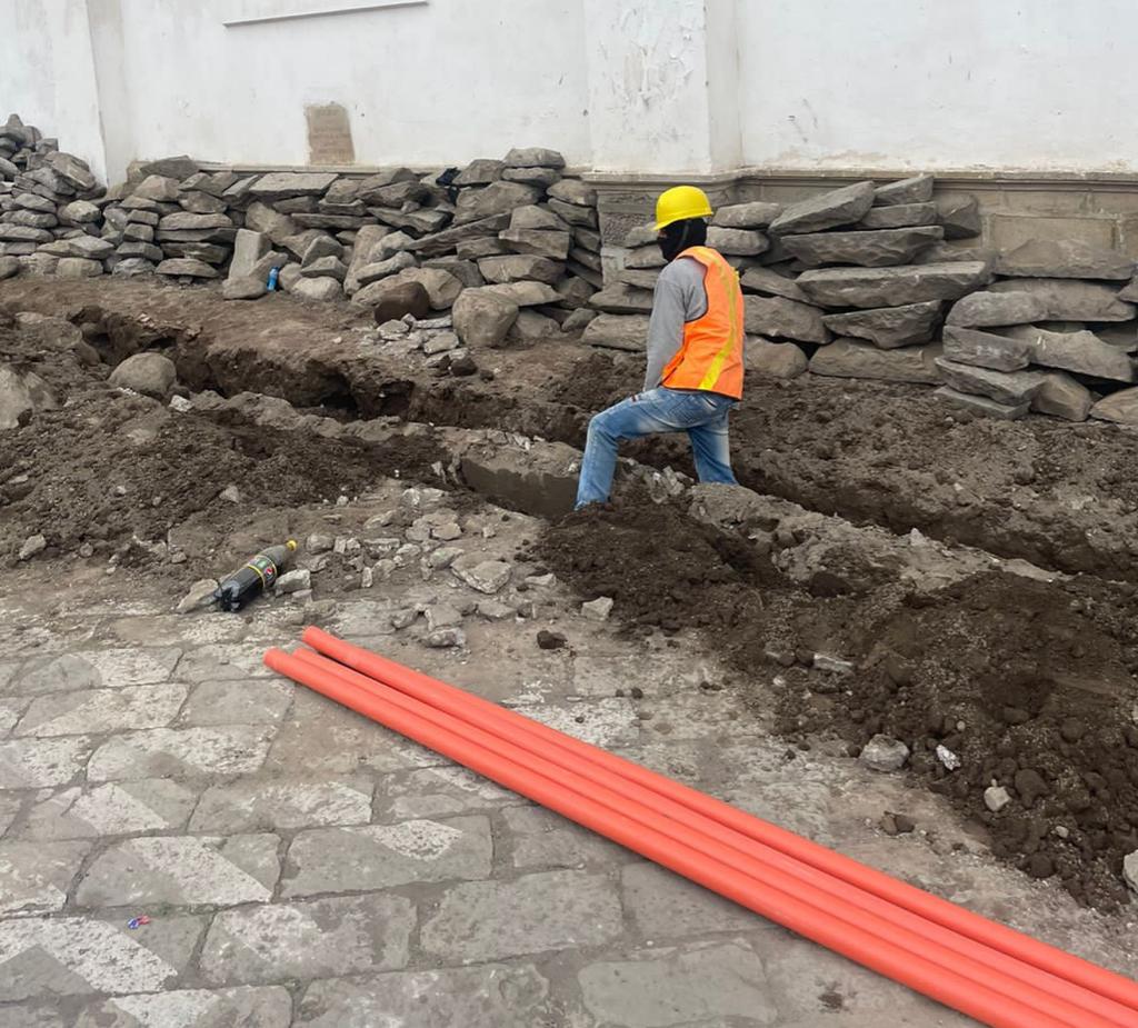 Desde el mes de diciembre, iniciaron con los trabajos de ensanchamiento de aceras, colocación de adoquines, iluminación del entorno de la iglesia de San Luis.
