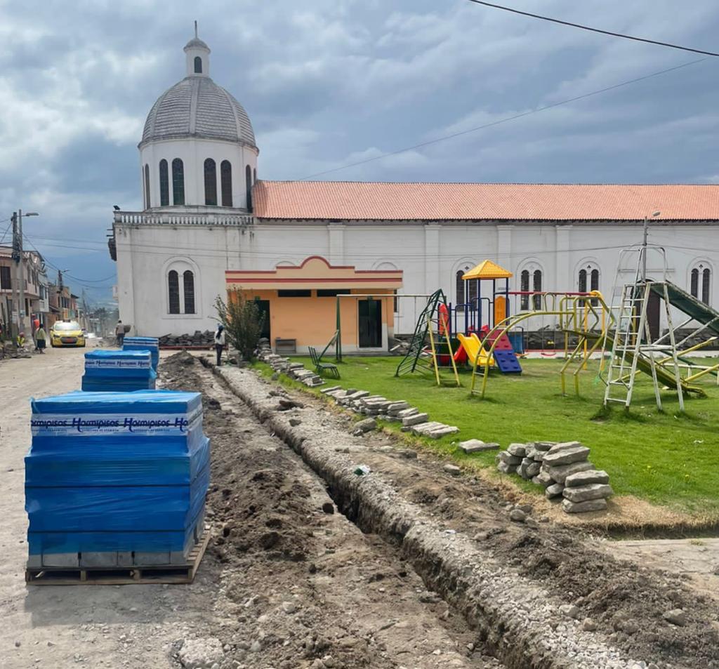 Al momento la obra tiene un avance del 10%. Dentro de los trabajos ejecutados constan de la nivelación y exacción del entorno, instalación de tubería, excavación para la construcción de bordillos, entre otros. La intervención de la obra consiente en el entorno del parque central.